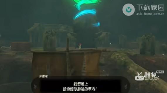 3、乘以木筏在水中寻找独自一人游水的菲内,寻找后与之会话;